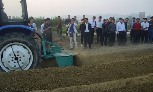大型旋耕起壟機是為33.1-66.2千瓦(45-90馬力級)拖拉機配套的中間全齒輪傳動整地機。其結構特點是整機剛性好,左右對稱,受力平衡,工作可靠。耕作后壟形成型好,地表平整,覆蓋嚴密,工效較高,油耗較低,對土壤濕度適應范圍較大,一般拖拉機能下田即可進行耕作。